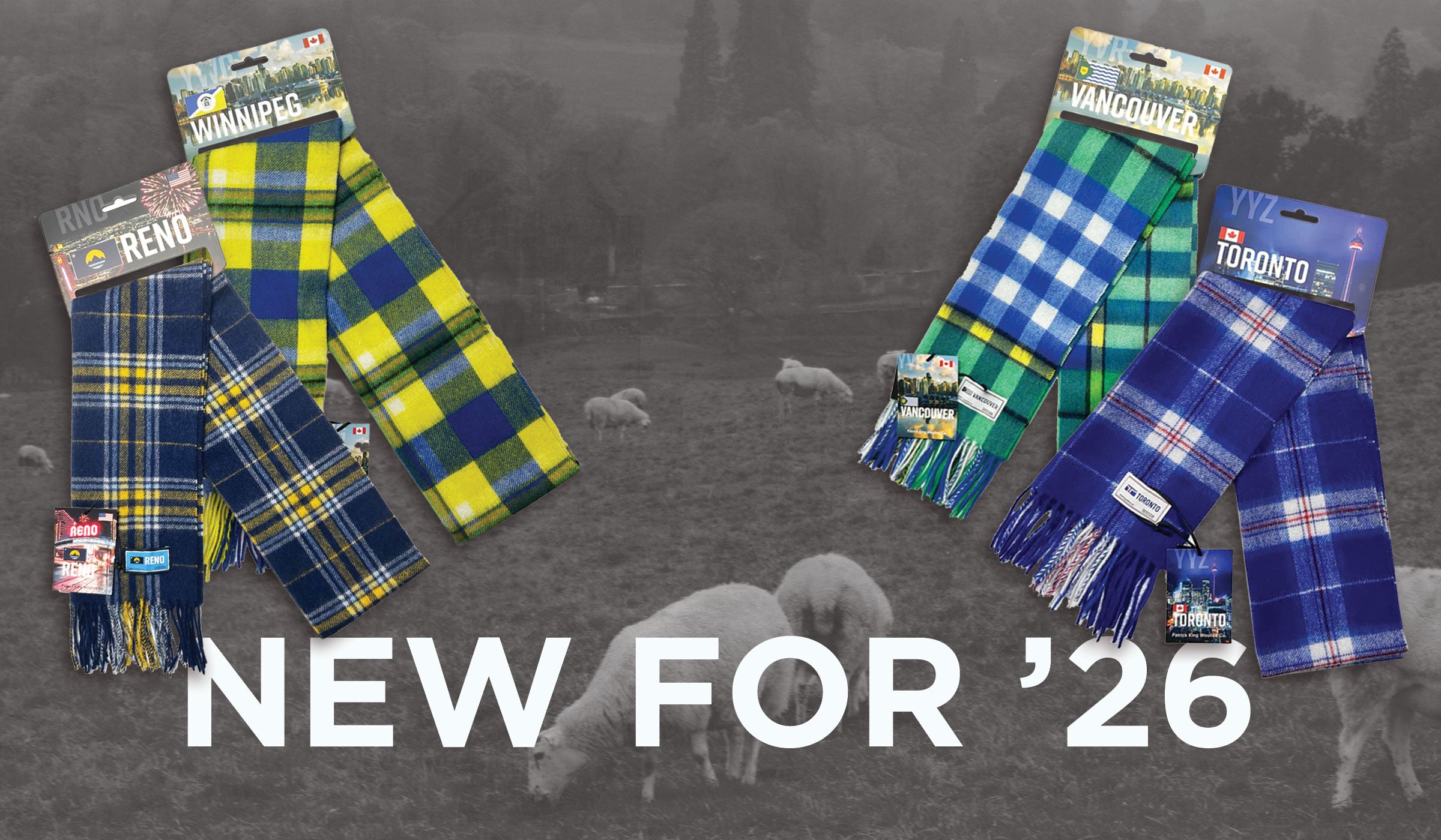 New! Lambswool scarves based on official city flags!