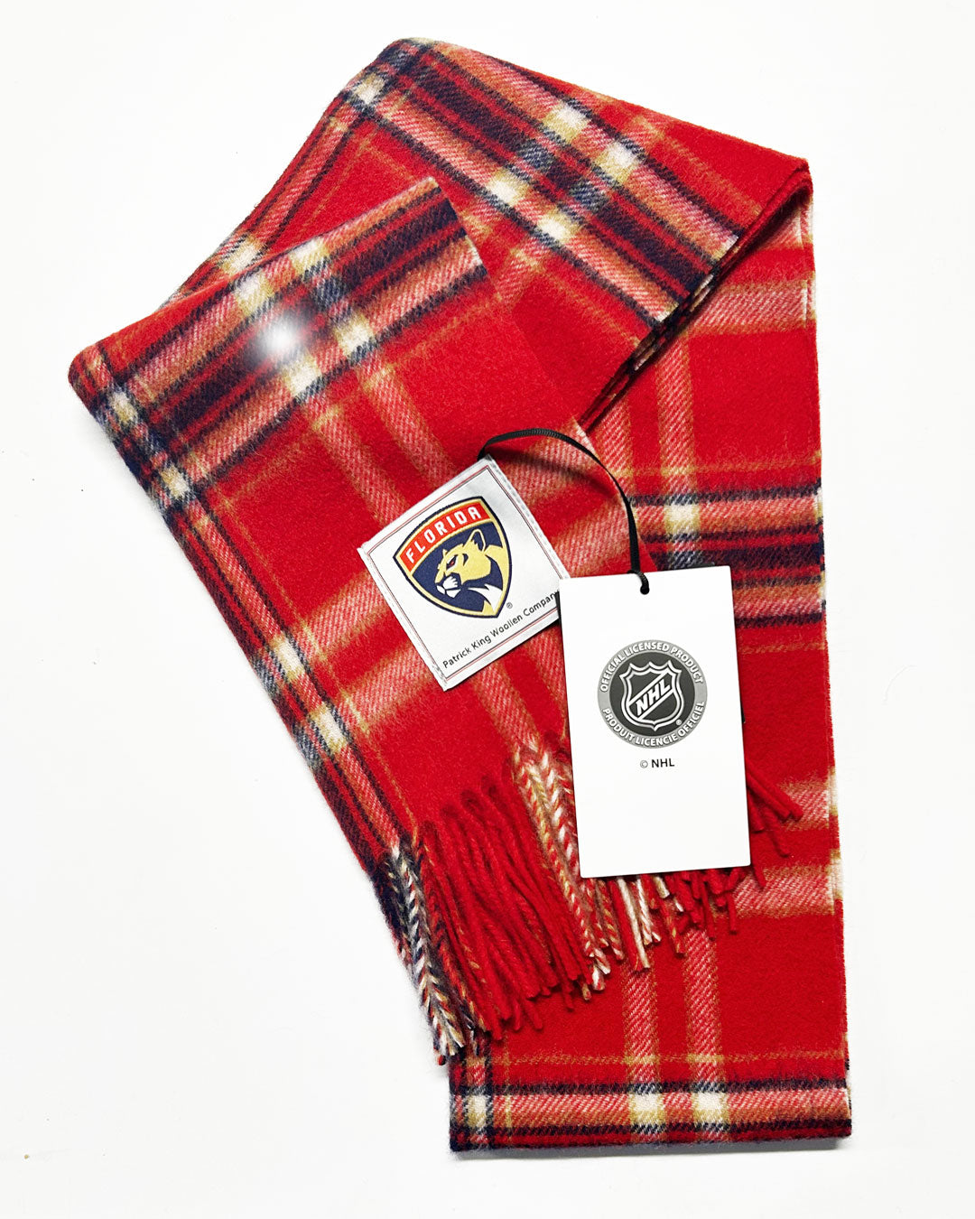 The Florida Panthers, located in Sunrise, Florida, are the southernmost team in the NHL. The Panthers initially played their home games at Miami Arena before moving to the FLA Live Arena in 1998. The team is named for the endangered species of large cat found in the Everglades region of Florida. Founded in 1993, The Panthers played their first game on October 6, 1993. The Panthers have made one Stanley Cup® Championship appearance. The date of their first game as the Florida Panthers has been used to create the thread counts (width of lines) within the weave of this original tartan design: 10-06-19-93.