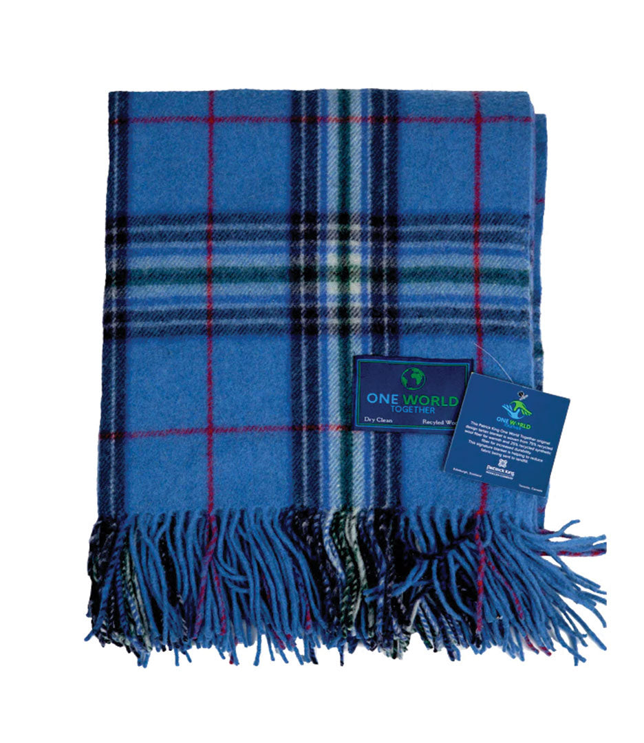 This tartan was designed in honour of our planet and our home. It is a reminder that the sustainability of our planet is the responsibility of us all. The name represents how we share this one world and how we can make a difference in keeping it healthy by protecting its inhabitants, lands and oceans. Colours: green represents maintaining a healthy planet; blue represents the world’s oceans; white represents peace; black represents dignity and equality; and red symbolizes love.