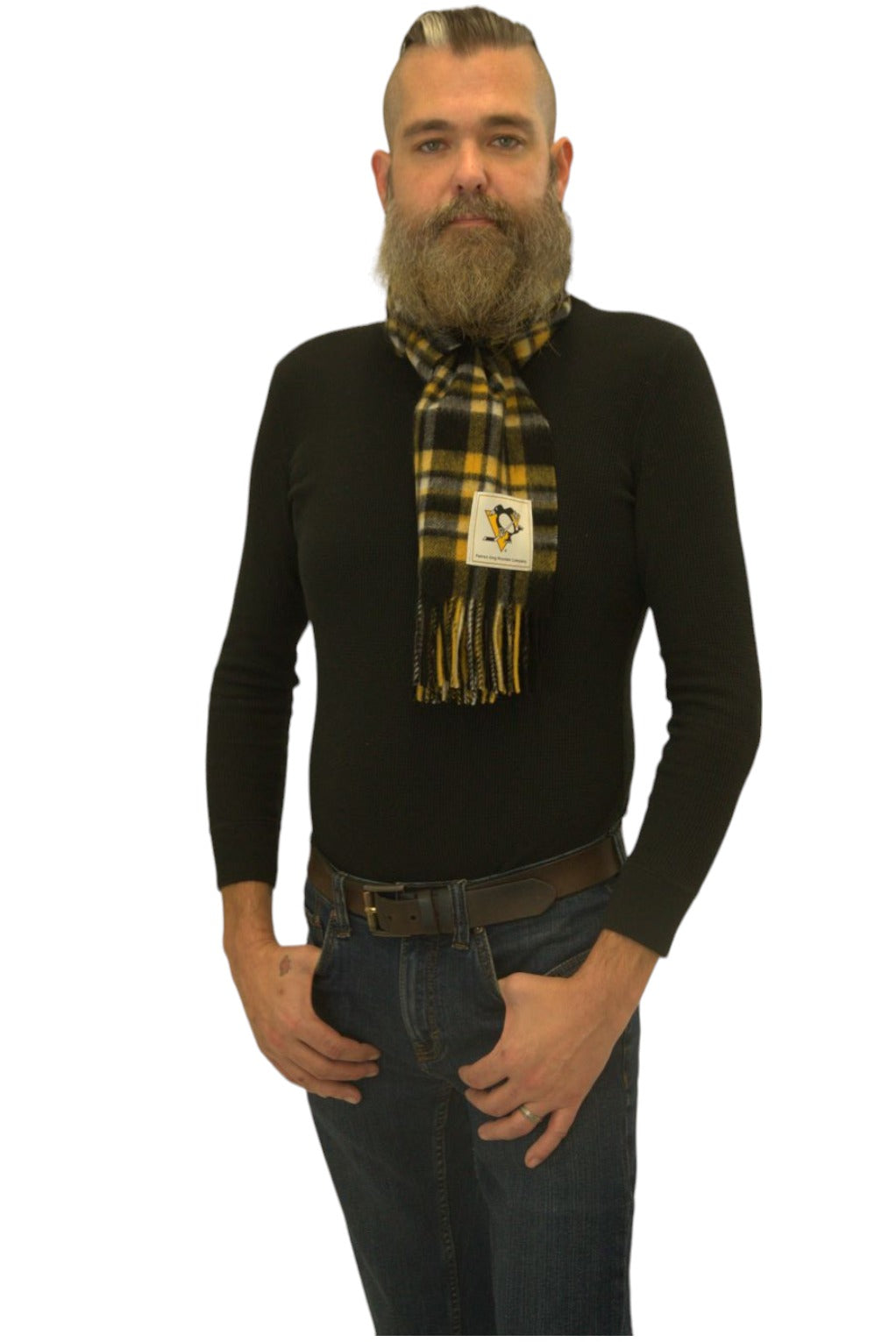 The Pittsburgh Penguins were founded during the 1967 NHL expansion. The name “Penguins” originated from their home ice being known as the “Igloo”. The Penguins have won the Stanley Cup® Championships five times—in 1991, 1992, 2009, 2016, and 2017 and are tied with Edmonton Oilers for the most Stanley Cup® Championships among the non-Original Six teams. The Penguins played their first game on October 11, 1967. The date of the Penguins first game and number of Stanley Cup® Championship victories have been used to create the thread counts (width of lines) within the weave of this original tartan design: 10-11-19-67-05.