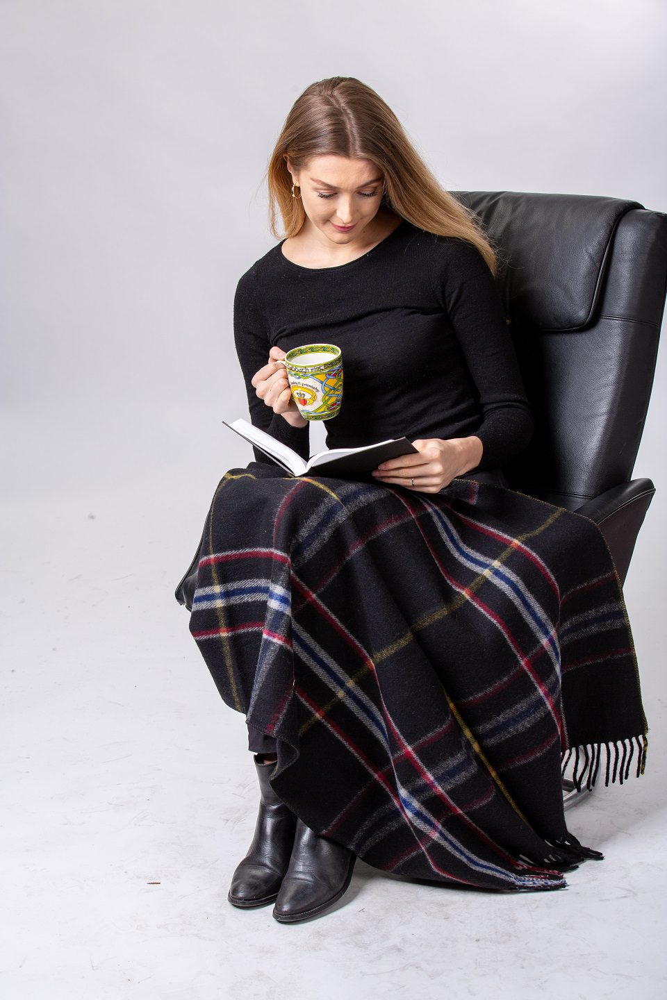 The Spirit of the Titanic tartan is a tribute to the lost souls and the bravery of the remaining passengers that perished during this tragic event. The threadcounts 04/15/12 mark the date of the sinking of the Titanic. The black base colour of the tartan represents the massive hull of the Titanic with the dark blue stripe representing the cold waters of the North Atlantic Ocean.