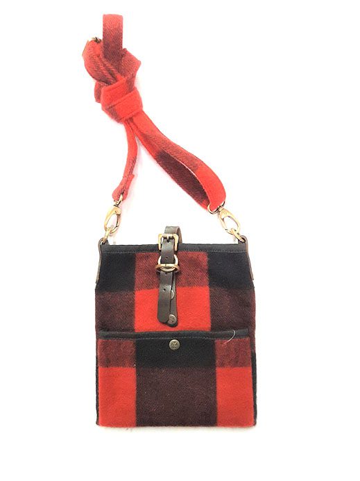 Islay deluxe wool cross body bag with wool straps, brass hardware, inside pocket.