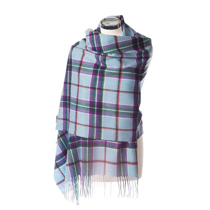 The World Peace Tartan was created in Scotland to promote a message of World Peace. The light blue represents the presence of Hope and Potential of the United Nations. Scotland is symbolized by the purple and green of the Scottish thistle. The red and black are reminders of the realities, violence and devastation of wars and the utter need for a New living culture of non-violence and Peace. The white running through the pattern provides a counterbalance, symbolic of Peace and Light.