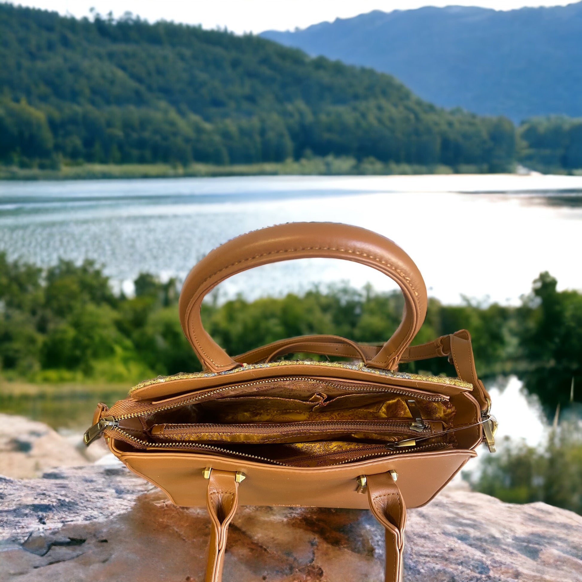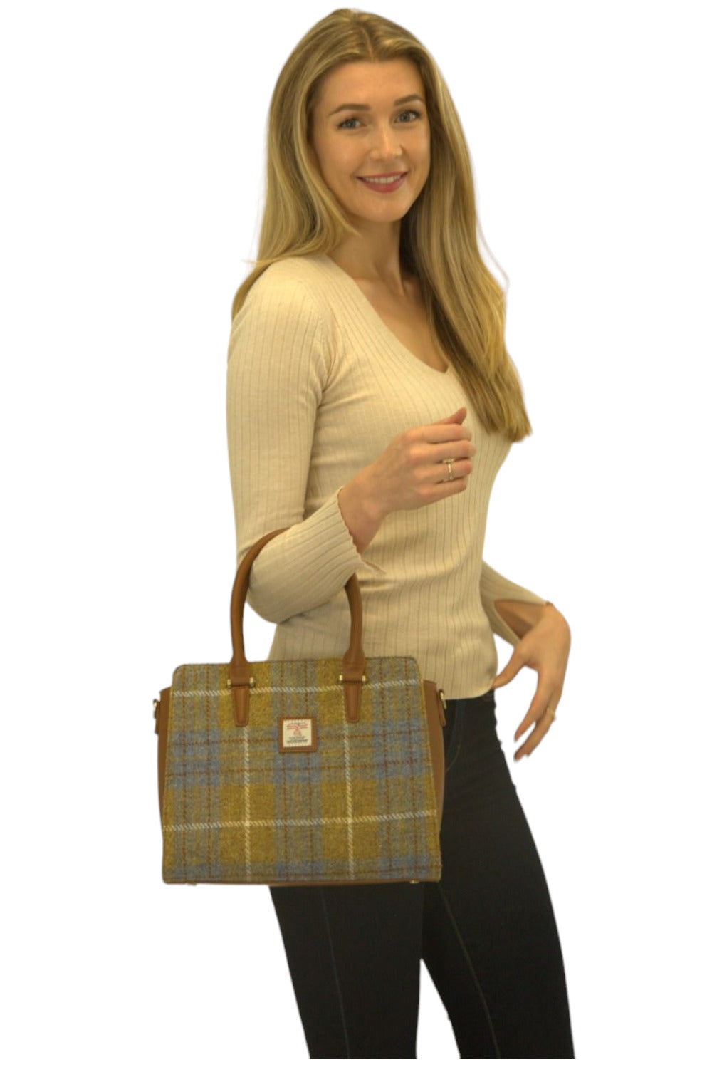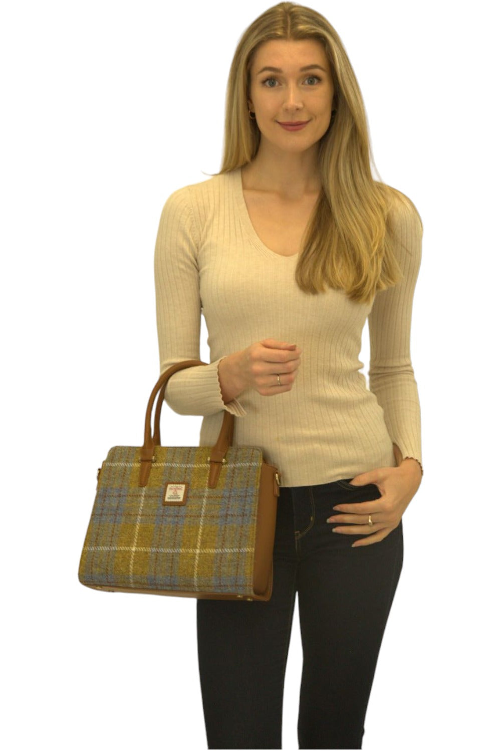 The exterior of the bag showcases the timeless beauty of Harris Tweed, with its distinctive herringbone pattern and rich, earthy tones. The sturdy double handles, provide a comfortable grip and add a touch of refinement to the overall design. Whether carried in hand or on the shoulder, this tote bag exudes a sense of effortless style.