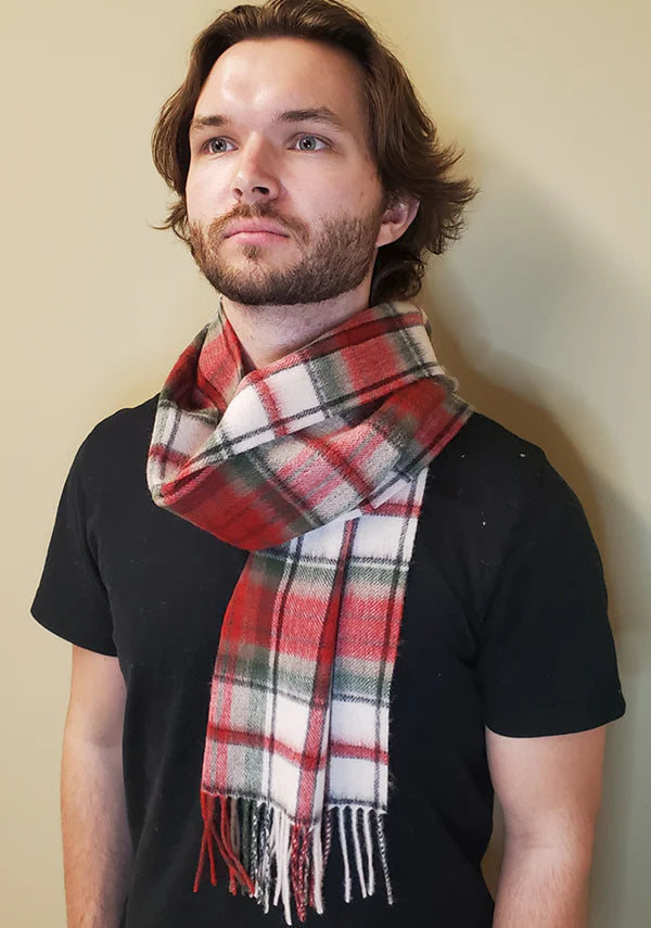 The MacDuff tartan is white-based with a green and red check for a modern dress style.